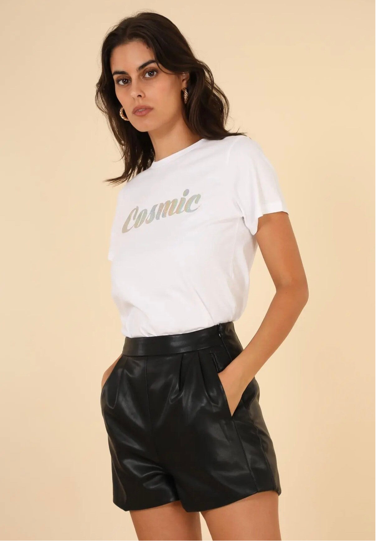 Short en cuir noir, doté d’une fermeture éclair pour une finition moderne et pratique. Une pièce au style affirmé, parfaite pour apporter une touche chic et tendance à une tenue.